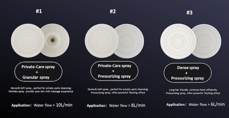 O painel de saída substituído pode ser oferecido junto, para que haja mais opções de pulverização para os membros da família, que podem escolher o padrão de pulverização que mais gostam, trocando facilmente o painel